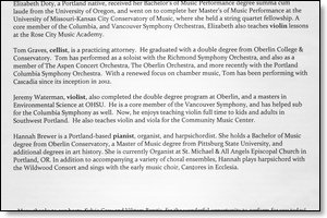 Cascadia Chamber Ensemble - House Concert June 13, 2015